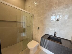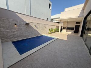 – Pedras naturais na fachada, muro piscina e churrasqueira